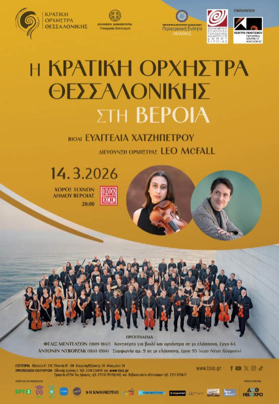 Την Κρατική Ορχήστρα Θεσσαλονίκης φιλοξενεί η ΚΕΠΑ Δήμου Βέροιας, το Σάββατο 14 Μαρτίου 2026, στον Χώρο Τεχνών- Θάνος Μικρούτσικος, στις 8.00μμ, με δύο αριστουργήματα της παγκόσμιας εργογραφίας, που υπογράφουν ο Φέλιξ Μέντελσον και ο Αντονίν Ντβόρζακ.