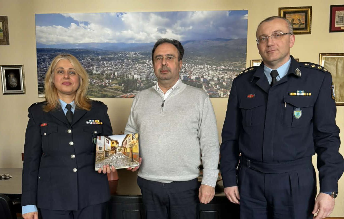 Τη νέα Γενική Περιφερειακή Αστυνομική Διευθύντρια Κεντρικής Μακεδονίας, Ταξίαρχο Φανή Γιουβανοπούλου και τον Διευθυντή της Διεύθυνσης Αστυνομίας Ημαθίας, Αστυνομικό Διευθυντή Ανδρέα Καλογερόπουλο, ο οποίος παρέμεινε επικεφαλής της Αστυνομίας στον νομό, υποδέχθηκε το μεσημέρι της 3ης Μαρτίου 2026 ο Δήμαρχος Βέροιας, κ. Κωνσταντίνος Βοργιαζίδης.