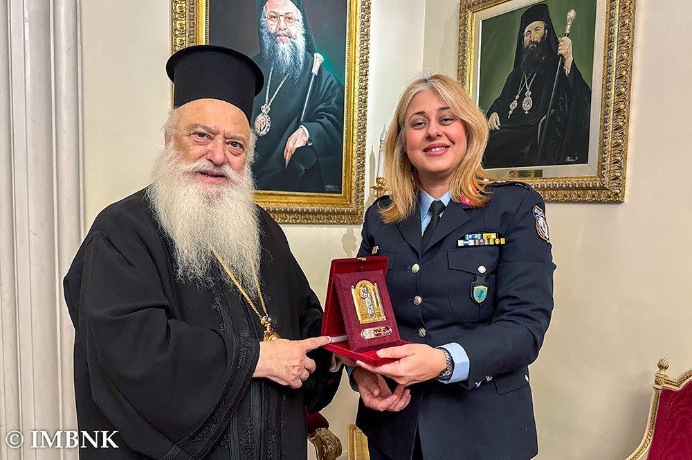 Ο Σεβασμιώτατος Μητροπολίτης μας κ. Παντελεήμων καλωσόρισε τη Γενική Περιφερειακή Αστυνομική Διευθύντρια στην Αποστολική Μητρόπολη Βεροίας και ευχήθηκε ο προστάτης και πολιούχος της Βεροίας, Όσιος Αντώνιος ο Νέος, καθώς και ο προστάτης της Ελληνικής Αστυνομίας, Άγιος Μεγαλομάρτυρας Αρτέμιος, να την ευλογούν και να την ενισχύουν στο δύσκολο έργο της.