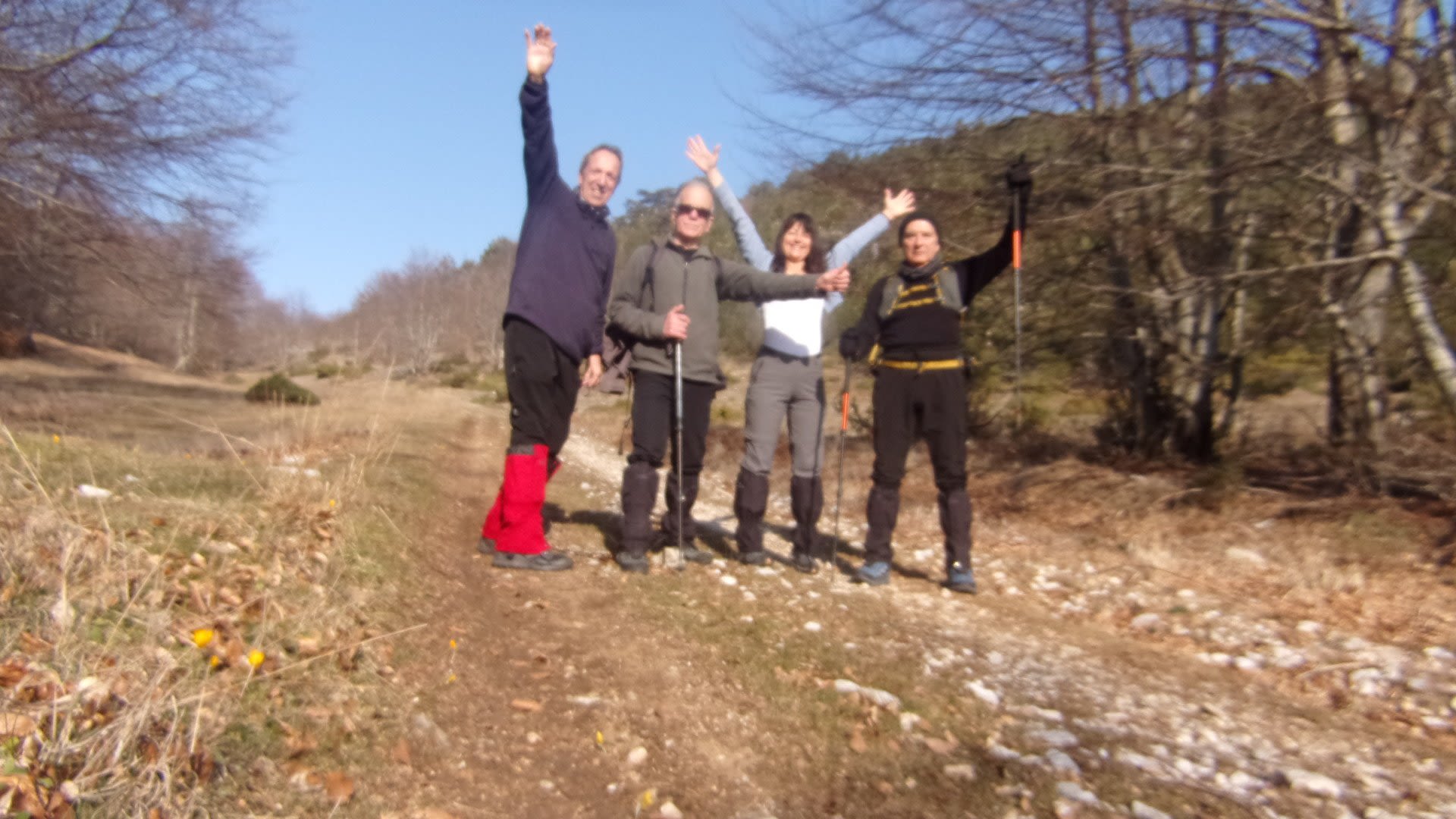 Οδοιπορούμε για περισσότερο από 30 λεπτά της ώρας, φτάσαμε σε σταυροδρόμι, σε ξέφωτο γυμνό από δένδρα, μόνο χαμηλή βλάστηση και θάμνοι.