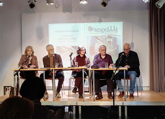 Στην εκδήλωση που διοργάνωσαν ο Σύνδεσμος Φιλολόγων Ν. Ημαθίας, η Δημόσια Βιβλιοθήκη, οι Εκδόσεις Μελάνι, το περιοδικό Κοράλλι και το βιβλιοπωλείο Ηλιοτρόπιο παρουσιάστηκε το αφιέρωμα του περιοδικού Κοράλλι και η έκδοση «Ο πηλός και το κανάτι - παρεμβάσεις αιθεροβάμονος». Για τον Θανάση Μαρκόπουλο μίλησαν η ποιήτρια και κριτικός Άννα Αφεντουλίδου, ο κριτικός και γραμματολόγος Αλέξης Ζήρας και ο συγγραφέας Κώστας Χατζηαντωνίου, διευθυντής του περιοδικού, ενώ την εκδήλωση συντόνισε η πρόεδρος του Συνδέσμου Φιλολόγων, Δέσποινα Καρυπίδου.