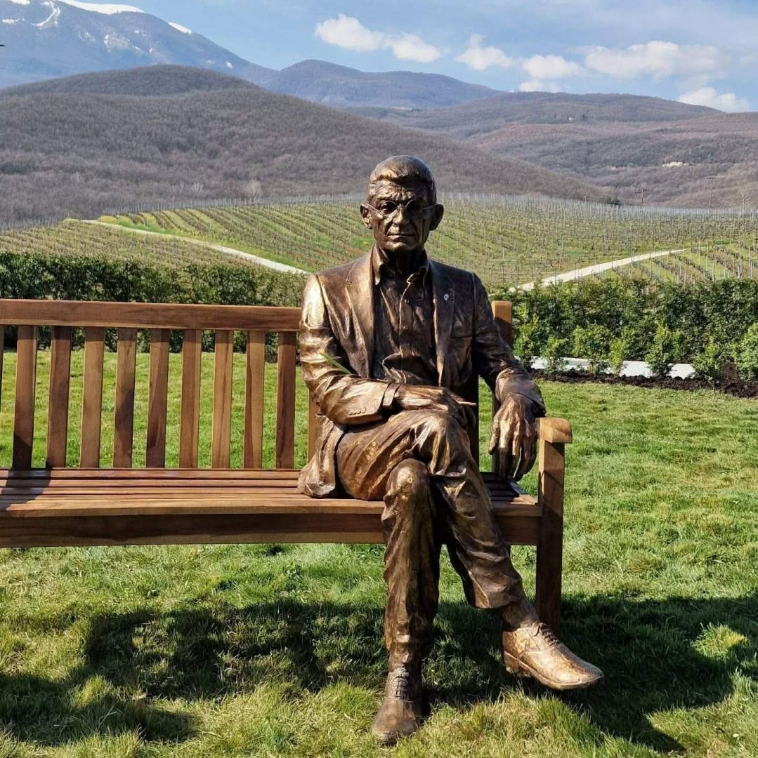 Στα αμπέλια του στο κτήμα της Νάουσας «επέστρεψε» ο Γιάννης Μπουτάρης. Η μορφή του, σε γλυπτό φυσικού μεγέθους κατασκευασμένο από ορείχαλκο, καθισμένη σε ένα παγκάκι, θα καλωσορίζει εφεξής τους επισκέπτες του κτήματος.