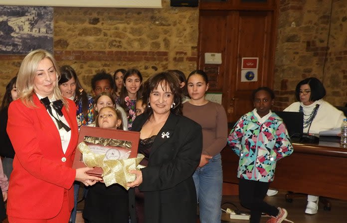 Μια έκπληξη που περίμενε στην αίθουσα την Ελένη Αναγνώστου, προκάλεσε την συγκίνηση της ίδιας αλλά και του κοινού, όταν μικροί μαθητές της σχολικής χορωδίας της, τραγούδησαν για την αγάπη με κλαδιά ροδακινιάς στα χέρια. Την πλακέτα, της έδωσε η κα Καζελίδου, ενώ για την μουσικό και εκπαιδευτικό μίλησαν σε βίντεο, ενήλικες χορωδοί και συνεργάτες της.
