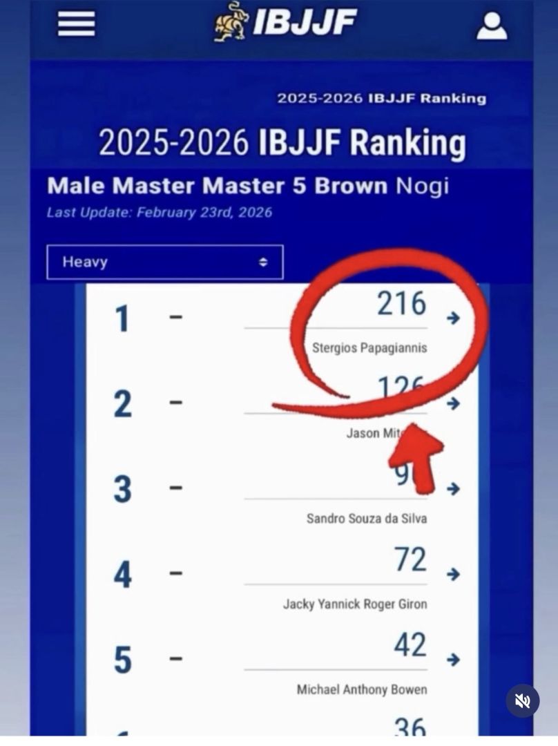 Στη πρώτη θέση στο raking της παγκόσμιας ομοσπονδίας Jiu Jitsu ανέβηκε ο Στεργιος Παπαγιαννης μετά και τις τελευταίες επιτιμάτο διεθνές open που διεξήχθη στο Λονδίνο