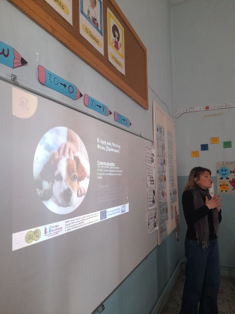 Εισηγήτρια της δράσης ήταν η κ. Γονίδου Ελένη, Βοηθός Κτηνιάτρου, η οποία με τρόπο άμεσο και διαδραστικό μετέδωσε στους μαθητές βασικές αρχές για την σωστή αντιμετώπιση των ζώων και τα οφέλη της που έχει η φροντίδα των κατοικίδιων στους ανθρώπους και τα παιδιά.