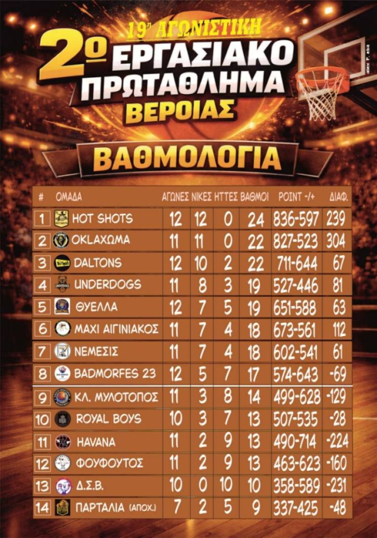 τα παιχνίδια της 19ης αγωνιστικής. Η ομάδα των HotShots παρατάχθηκε