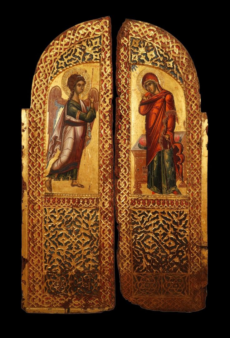 βημόθυρο με γραπτή παράσταση του Ευαγγελισμού από το τέμπλο του μεταβυζαντινού