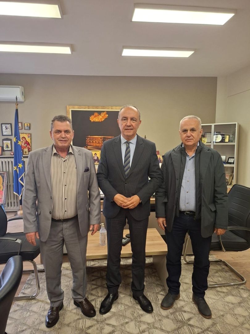 Ο κ. Καράογλου συναντήθηκε με τον Σεβασμιώτατο Μητροπολίτη Βεροίας, Ναούσης και Καμπανίας κ.κ. Παντελεήμονα, με τον οποίο συζήτησε τον σημαντικό ρόλο που διαδραματίζει η Εκκλησία στη στήριξη των τοπικών κοινωνιών. Ακολούθησε συνάντηση με τον Αντιπεριφερειάρχη Ημαθίας, Κώστα Καλαϊτζίδη, στη διάρκεια της οποίας τέθηκαν επί τάπητος ζητήματα που αφορούν τις υποδομές, την αγροτική ανάπτυξη και την ενίσχυση της τοπικής οικονομίας. Στη συνέχεια επισκέφθηκε το Δημαρχείο Βέροιας, όπου συναντήθηκε με τον Δήμαρχο Κωνσταντίνο Βοργιαζίδη. Στο επίκεντρο της συζήτησης βρέθηκαν τα έργα που βρίσκονται σε εξέλιξη στην πόλη, καθώς και οι προοπτικές περαιτέρω ανάπτυξης του δήμου.