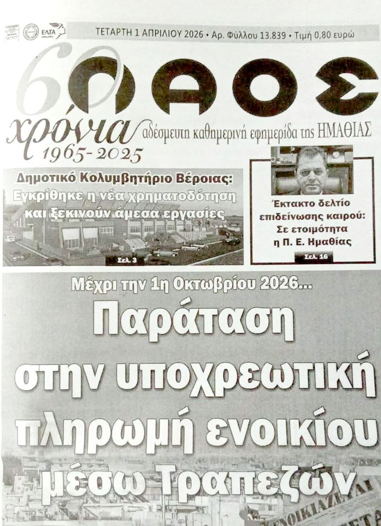 Πολύ καλό για να είναι αληθινό… Και εννοούμε το χθεσινό δημοσίευμα με τίτλο «Δημοτικό Κολυμβητήριο Βέροιας: Εγκρίθηκε η νέα χρηματοδότηση και ξεκινούν άμεσα εργασίες» στο πρωτοσέλιδο και στην σελ. 3 του ΛΑΟΥ.