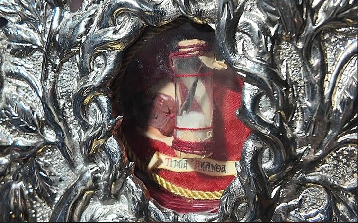 Εν προκειμένω η πιστοποίηση έγινε μέσω της σφραγίδας από κόκκινο βουλοκέρι στο πίσω μέρος του γυαλιού με το οικόσημο Επισκόπου, που λειτουργεί ως «δικλείδα ασφαλείας» και χρονολογεί την περίοδο. Οι δε κόκκινες μεταξωτές κλωστές που δένουν το μπουκαλάκι είναι θαμμένες μέσα στο κερί ήταν άθικτες και αν κάποιος προσπαθούσε να ανοίξει το καπάκι, οι κλωστές θα έσπαγαν το βουλοκέρι, ακυρώνοντας αμέσως την εγκυρότητα του. Το κειμήλιο ανήκε σε ιδιώτη συλλέκτη και παραχωρήθηκε στην Καλλίπετρα το 2014 για να εκτεθεί σε προσκύνημα προκειμένου να ενισχυθεί οικονομικά η ανέγερση των εγκαταστάσεων. Η δε ασημένια λειψανοθήκη που βλέπουμε σήμερα είναι της ίδιας περιόδου κατά την οποία αφαιρέθηκε η άκανθος και αναπαριστά ανάγλυφα ακανθώδη κλαδιά.