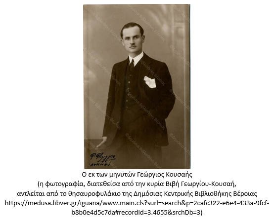 [3] ενν. Κουσαή• τα εντός αγκυλών {} ονόματα των εκπαιδευτικών αντλούνται από την εργασία του Αλέκου Χατζηκώστα «Οι «περιπέτειες» του συλλόγου δασκάλων Βέροιας ῾30 -῾40», που παρουσιάζει τα, κατά τα έτη 1930-1940, καταστατικά και τις διοικήσεις του ως άνω Συλλόγου. [: https://www.alfavita.gr/ekpaideysi/105431_oi-peripeteies-toy-syllogoy-daskalon-beroias-30-40]