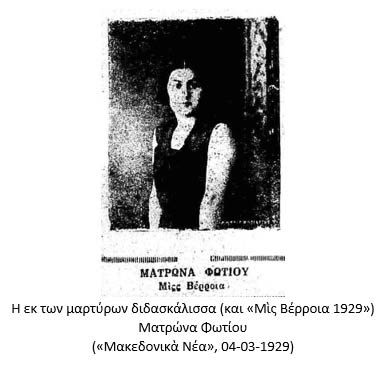 Σημειωτέον ὅτι ἡ διδασκάλισσα δεσποινὶς Ματρώνα Φωτίου, εἶναι ἡ γνωστή μας “Μὶς-Βέρροια τοῦ 1930”[7].