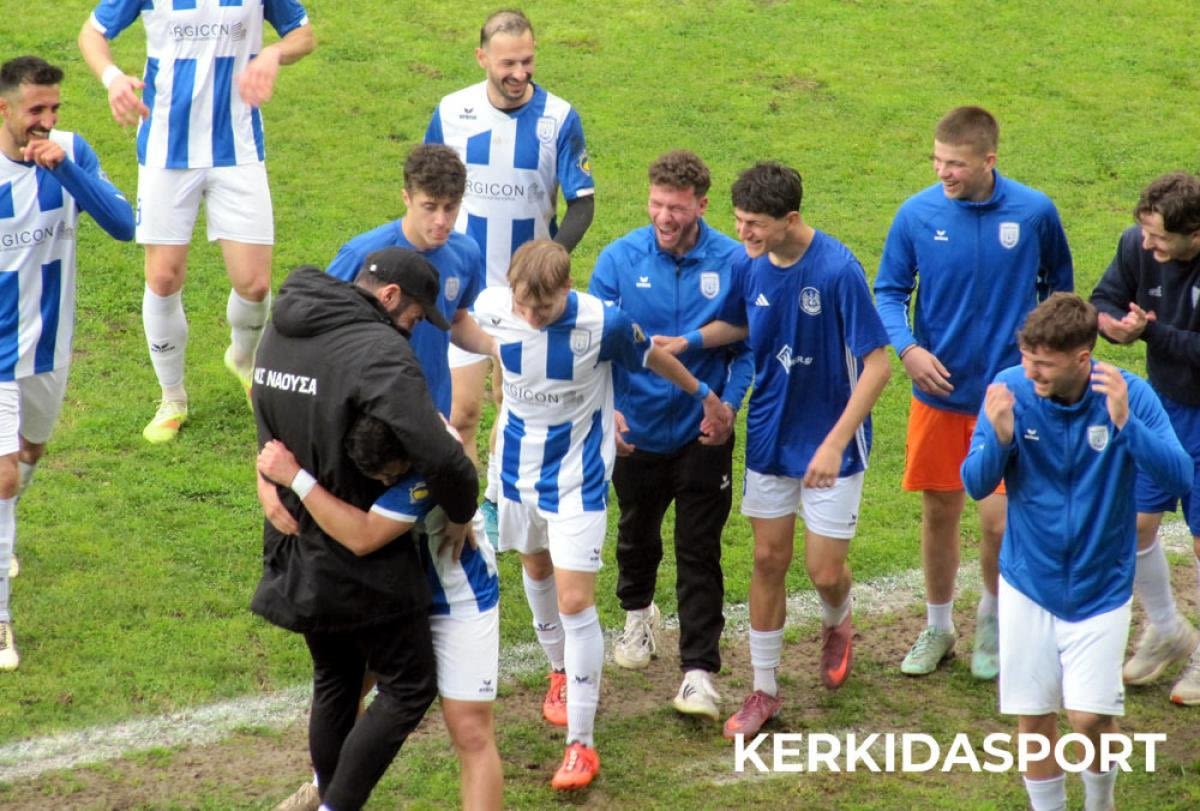 Το τελευταίο σφύριγμα βρήκε τους παίκτες της Νάουσας να γίνονται ένα κουβάρι στον αγωνιστικό χώρο. Η φετινή χρονιά κλείνει με τον καλύτερο δυνατό τρόπο: Πρωτάθλημα, Κύπελλο και άνοδος στη Γ’ Εθνική μετά από αρκετά χρόνια