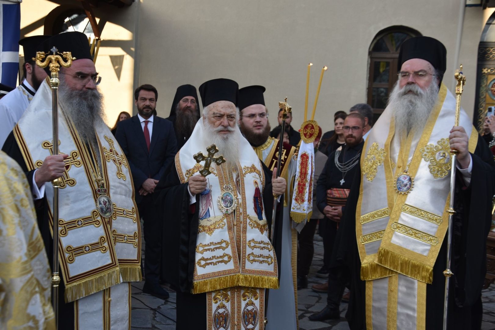 Με ιδιαίτερη κατάνυξη και τη συμμετοχή πλήθους πιστών τελέστηκε στη Νάουσα ο Μέγας Πολυαρχιερατικός Πανηγυρικός Εσπερινός της μνήμης των Αγίων Ναουσαίων Νεομαρτύρων, τιμώντας τις 1241 ψυχές του Ολοκαυτώματος της πόλης.