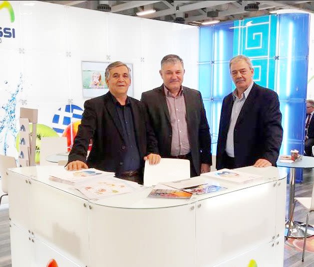 Τα περίπτερα των συνεταιρισμών της Ημαθίας στη φετινή Fruit Logistica του Βερολίνου επισκέφθηκαν το περασμένο διήμερο ο Ημαθιώτης πρόεδρος της Κεντρικής Αγοράς Θεσσαλονίκης Δημήτρης Χαμπίδης και ο πρόεδρος του Οργανισμού Κεντρικών Αγορών και Αλιείας Μιχάλης Μυτιληνάκης. Στη φωτογραφία μας η... στάση στο καλαίσθητο περίπτερο του Α.Σ. Μέσης, όπου είχαν συνάντηση και συζήτηση με τον πρόεδρο του Α.Σ. Μέσης και αντιπρόεδρο της Κοινοπραξίας Ομάδων Παραγωγών Ημαθίας Ιορδάνη Κυρατλίδη.