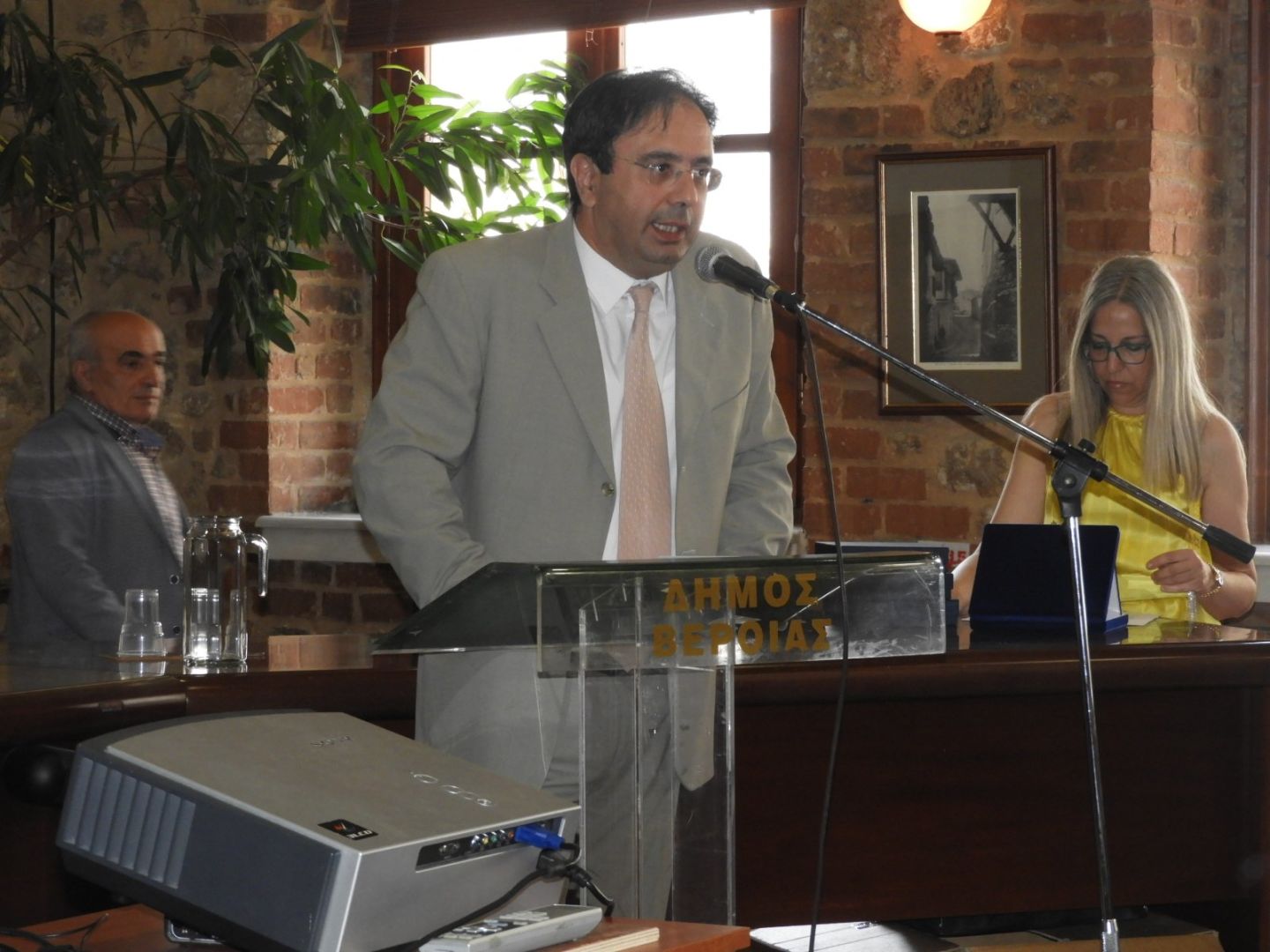 Τα 100 χρόνια από την ίδρυσή του γιορτάζει σήμερα ο Δήμος Βέροιας με επετειακές εκδηλώσεις στο Δημαρχείο και στο Χώρο Τεχνών. Μετά τον χαιρετισμό του, ο δήμαρχος Κώστας Βοργιαζίδης, κάλεσε στο βήμα τον Ανδρέα Βλαζάκη, ως παλαιότερο εν ζωή δήμαρχο και του έδωσε τιμητική πλακέτα για τα το έργο του στο Δήμο και την προσφορά του στην ανάπτυξη της πόλης. Ο κ. Βλαζάκης εμφανώς συγκινημένος όταν μιλούσε για τη Βέροια, συγχάρηκε τον δήμαρχο και το δημοτικό συμβούλιο για για την πρωτοβουλία του εορτασμού και ευχαρίστησε για την τιμή που του έκαναν.