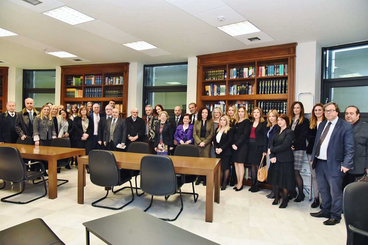 Ο ανώτατος δικαστικός της χώρας, συνοδευόταν από τον αρεοπαγίτη επιθεωρητή Γεώργιο Παπαηλιάδη και τους υποδέχθηκαν τα μέλη του Δ.Σ. του συλλόγου στο γραφείο του προέδρου Φ. Καραβασίλη.