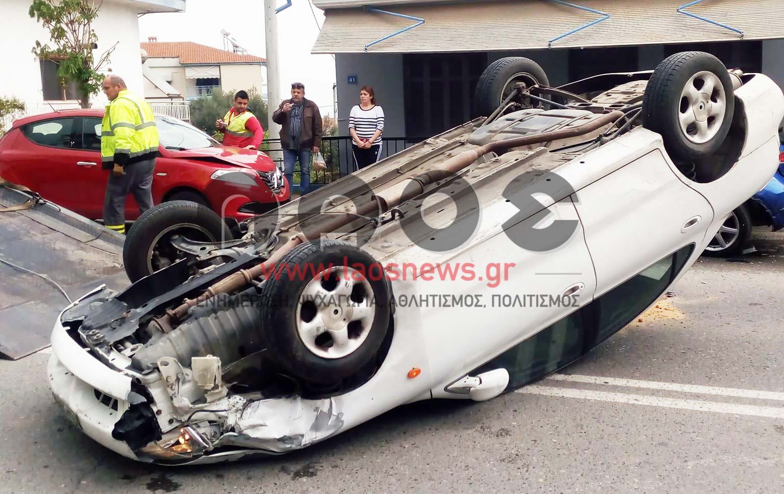Τροχαίο ατύχημα με ανατροπή Ι.Χ. αυτοκινήτου, στην οδό Πιερίων της Βέροιας, στο ύψος του «Σουέζ», σημειώθηκε το μεσημέρι γύρω στις 12.00, μετά από πρόσκρουση του Ι.Χ σε σταθμευμένο όχημα, σύμφωνα με τις πρώτες πληροφορίες.