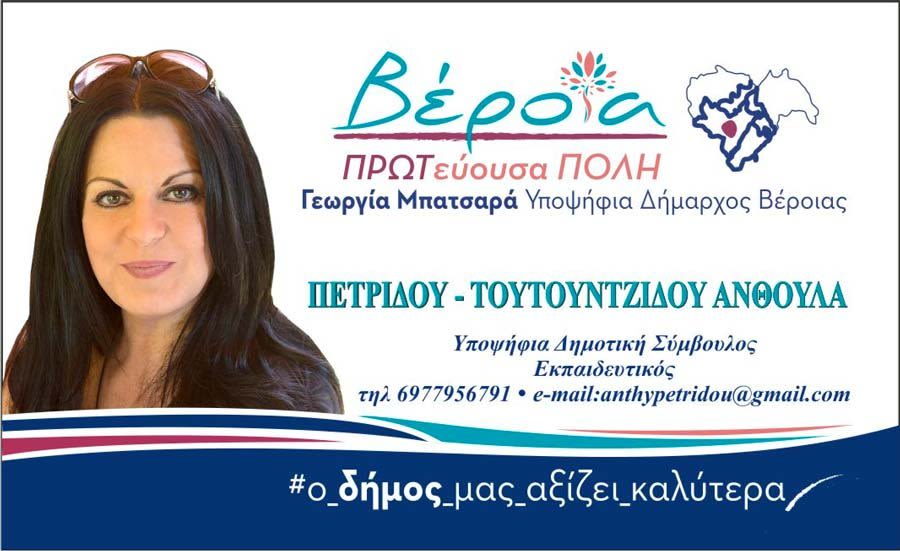 Το πρόγραμμα του Συνδυασμού μας Βέροια ΠΡΩΤεύουσα ΠΟΛΗ με υποψήφια Δήμαρχο,την Γεωργία Μπατσαρά, στοχεύει στη βελτίωση της ποιότητας ζωής στον Δήμο μας.