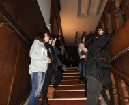 σκάλες και σε ένα εξαιρετικό ακροατήριο που άκουγε προσεκτικά και σημείωνε