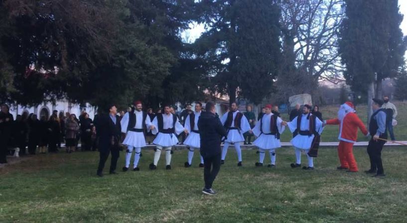 “Αγιός Βασίλης έρχιτι Γινάρης ξημερώνει, Βασίλιμ πούθεν έρχισι και πούθεν κατεβαίνεις, ιγώ απ τα ξένα έρχουμι και στα δικά μου πάω, αν έρχισι απ την ξενητειά πες μας κανα τραγούδι, ιγώ τραγούδια μάθνισκα τραγούδια να σας λέω, στην πατερίτσα ακούμπισα να πώ την άλφα βήτα κι η πατερίτσα ήταν χλωρή κι απόληκε κλωνάρια, κλωνάρια χρυσοκλώναρα κι ανάργυρα τα φύλλα. Φραγκίτσα εδώ Φραγκίτσα εκεί Φραγκίτσα πάει στη βρύση μι του γιουρντάνι στου λιμό το σύρμα στου κιφάλι και με τα ασημοζούναρα χαμπλά χαμπλά ζωμένη”