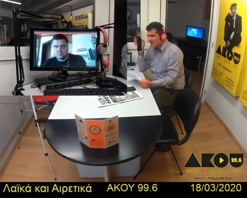 Ακούστε στην καθημερινή εκπομπή του ΑΚΟΥ 99,6 «Λαϊκά και Αιρετικά» της Τετάρτης 18 Μαρτίου 2020, με τους Ζήση Μ. Πατσίκα στο στούντιο και Νίκο Βουδούρη σε ζωντανή σύνδεση από το σπίτι του: