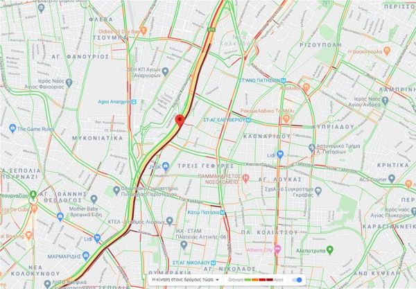 Σημειώνεται στο σημείο επικρατεί αυξημένη κίνηση, καθώς η κυκλοφορία των οχημάτων πραγματοποιείται μόνο από τη δεξιά λωρίδα.